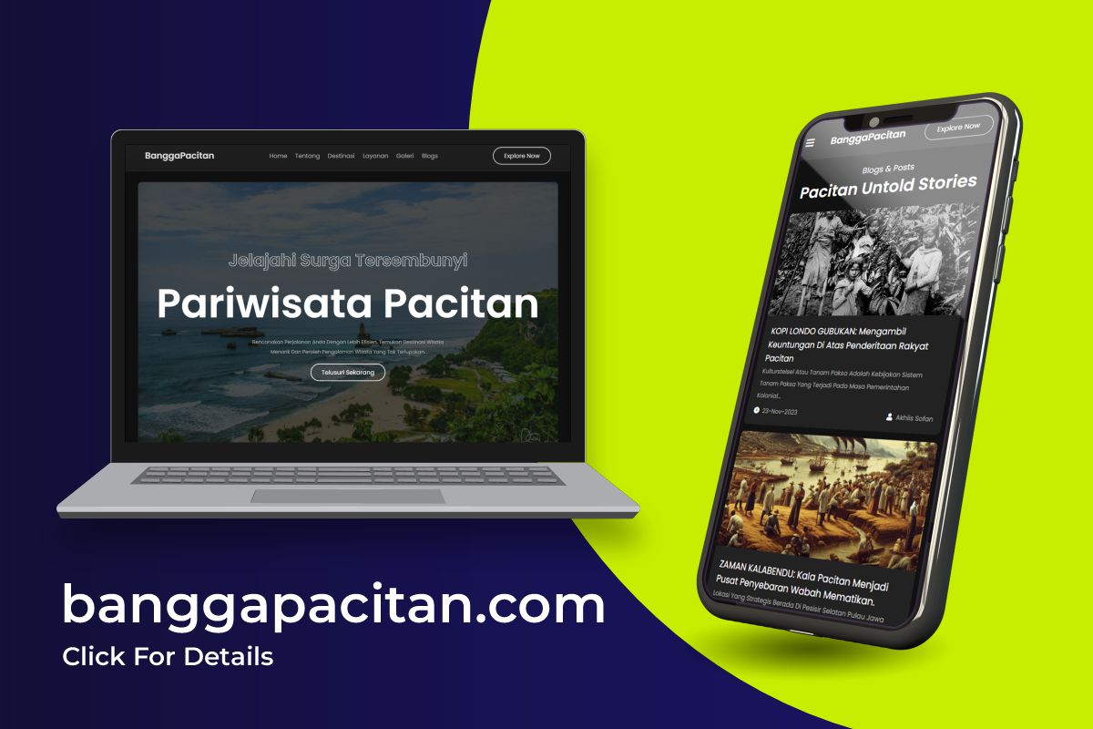 Beyond design, I was also part of the research and development team at Pacitanku.com, where I created informative content about Pacitan and developed the website banggapacitan.com.